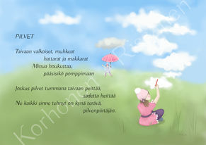 This set of four cards has been created with writer Jenni Rissanen. Poems and illustrations tell about two girls and their play and imagination. At the moment cards are only available in Finnish.